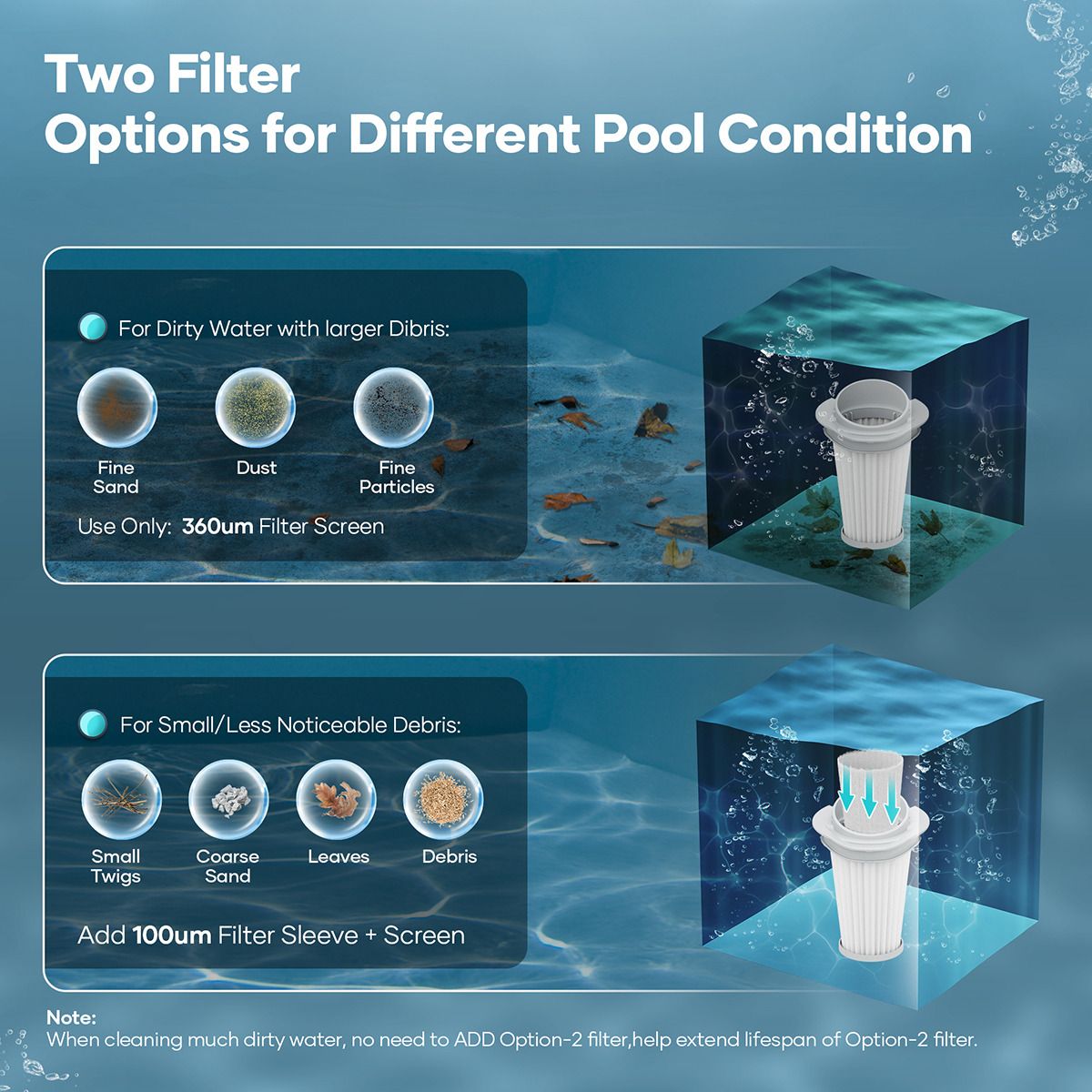 • Dve možnosti filtracije za različne vrste nečistoč: Idealno za pesek, listje, prah in drugo